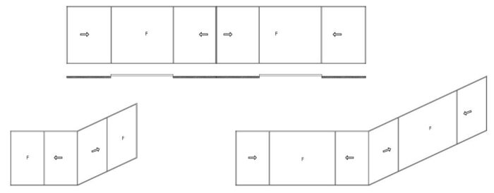 Ciascuna anta può pesare fino a 500 Kg portando un vetro da 42mm di spessore. Il profilo telaio ha un’altezza complessiva di soli 54 mm che scompare completamente senza soluzione di continuità con pareti, soffitto e pavimento.