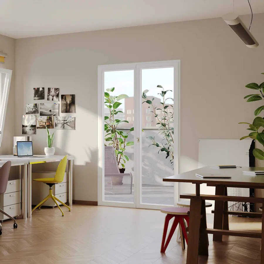 Il segreto di Luceviva sta nel suo profilo snello, con una sezione dell’anta di soli 76 mm, e in un nodo centrale ridotto del 35%. Questo design essenziale permette di avere più vetro e meno PVC, garantendo una luminosità senza precedenti. È disponibile in due configurazioni: con nodo centrale asimmetrico e maniglia decentrata per la massima stabilità, oppure con nodo centrale simmetrico per un’estetica ancora più pulita e rigorosa. La qualità è garantita dalla ferramenta perimetrale Tricoat-Evo, ultra resistente alla corrosione, e dal riscontro anti-effrazione perimetrale. Di serie, offre il comfort dell’anta a ribalta con micro-ventilazione e l’eleganza della maniglia Colombo Design.